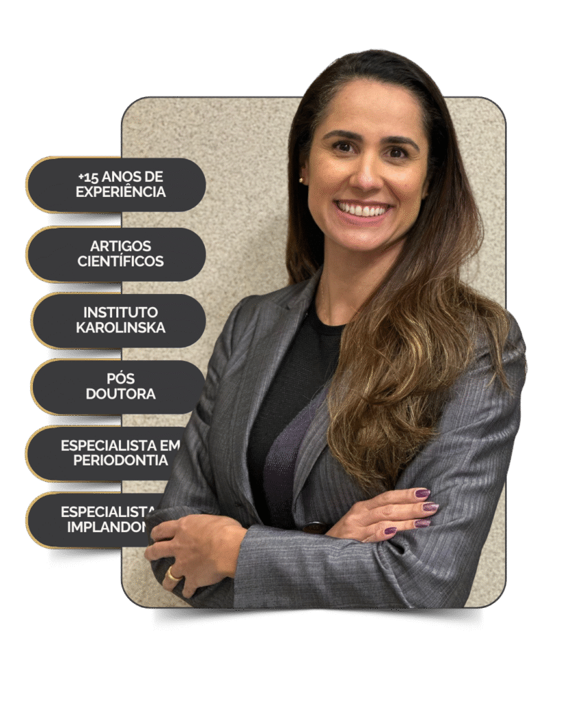 Dra. Gisele Martinez é especialista em Periodontia e Implantodontia, com mais de 15 anos dedicados à clínica e ao ensino na graduação e pós-graduação em odontologia.